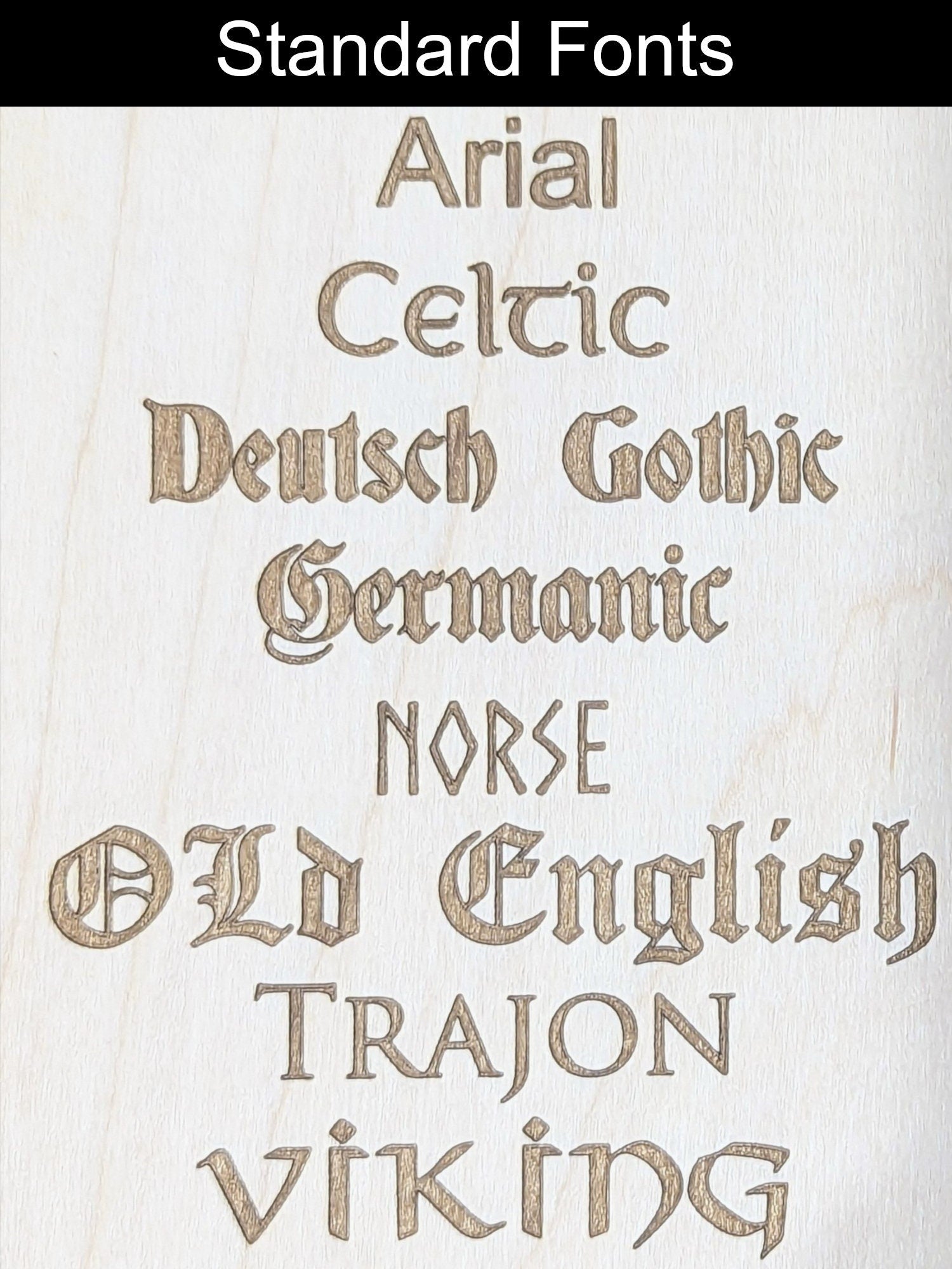 - Text: Include your desired font. If desired font is not one of the ones listed above please include a font file. Preferred file format is .ttf