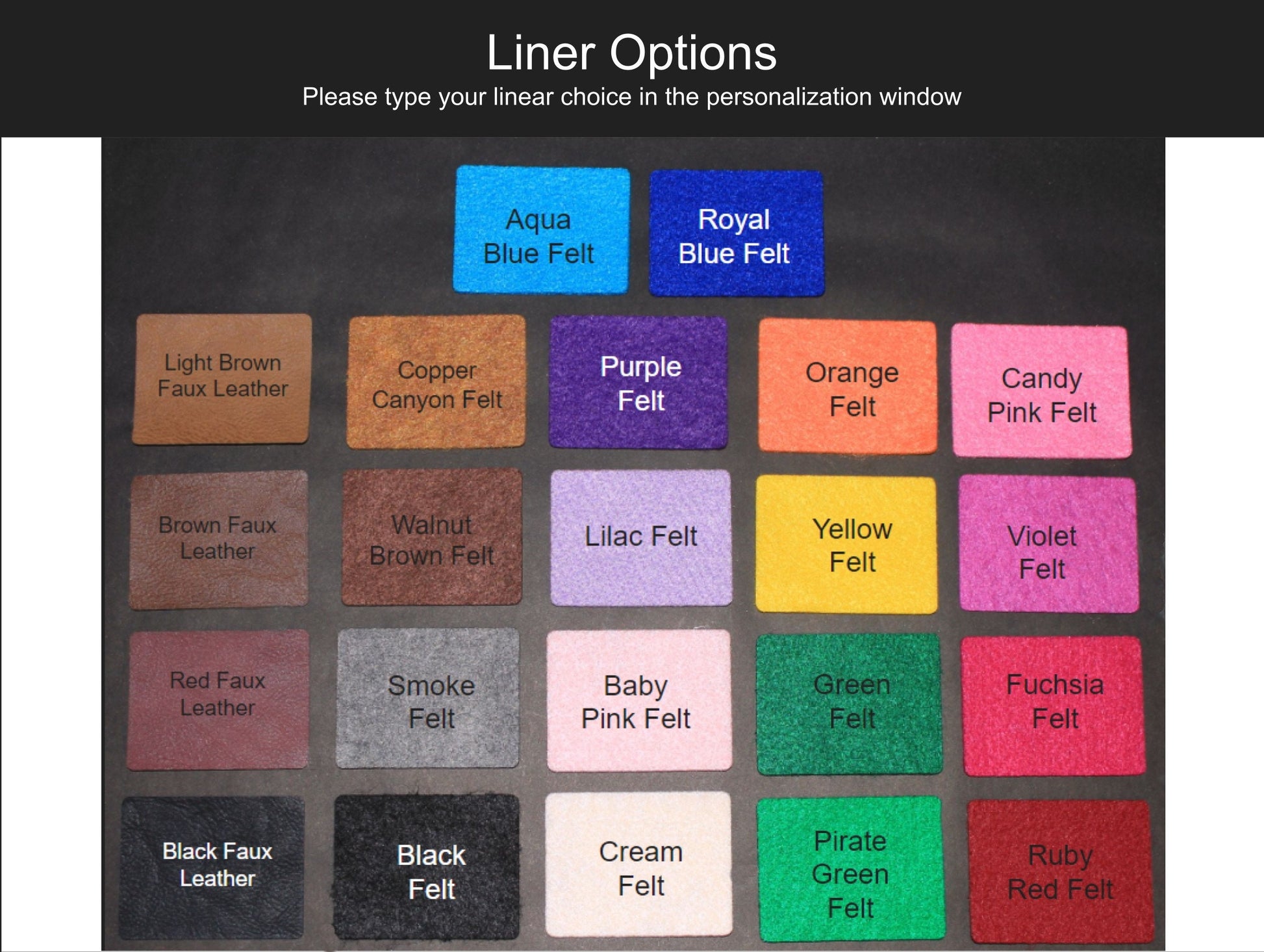 Each slot is lined with your color choice of felt or faux leather, perfect for keeping your cards protected for carrying or while not in use. (If your preferred color is not in the selection, contact us and we will see what we can do.)
