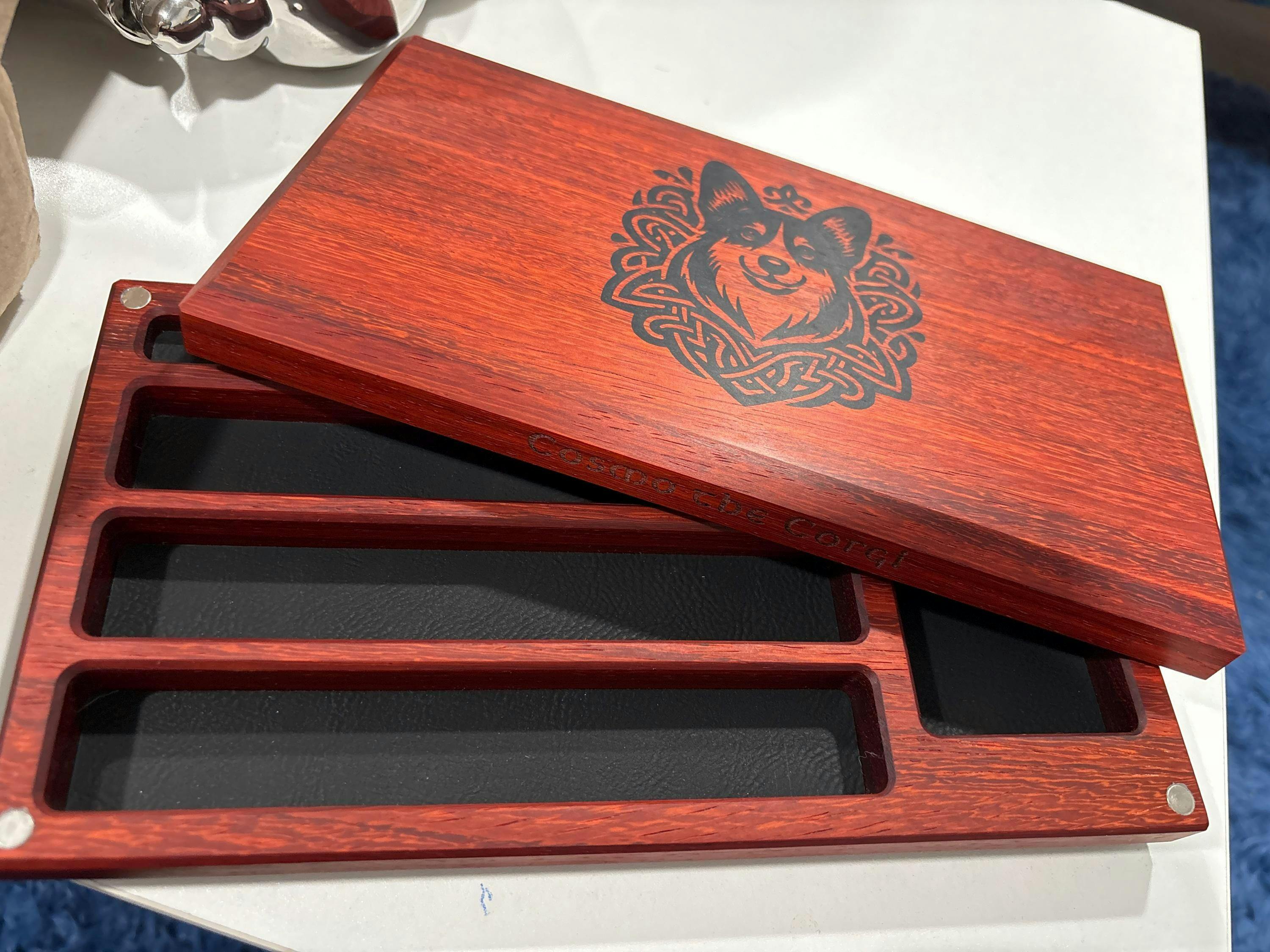 Handmade from premium hand selected hardwoods, lined with your choice of felt or faux leather, and laser engraved with your choice of image and/or text.